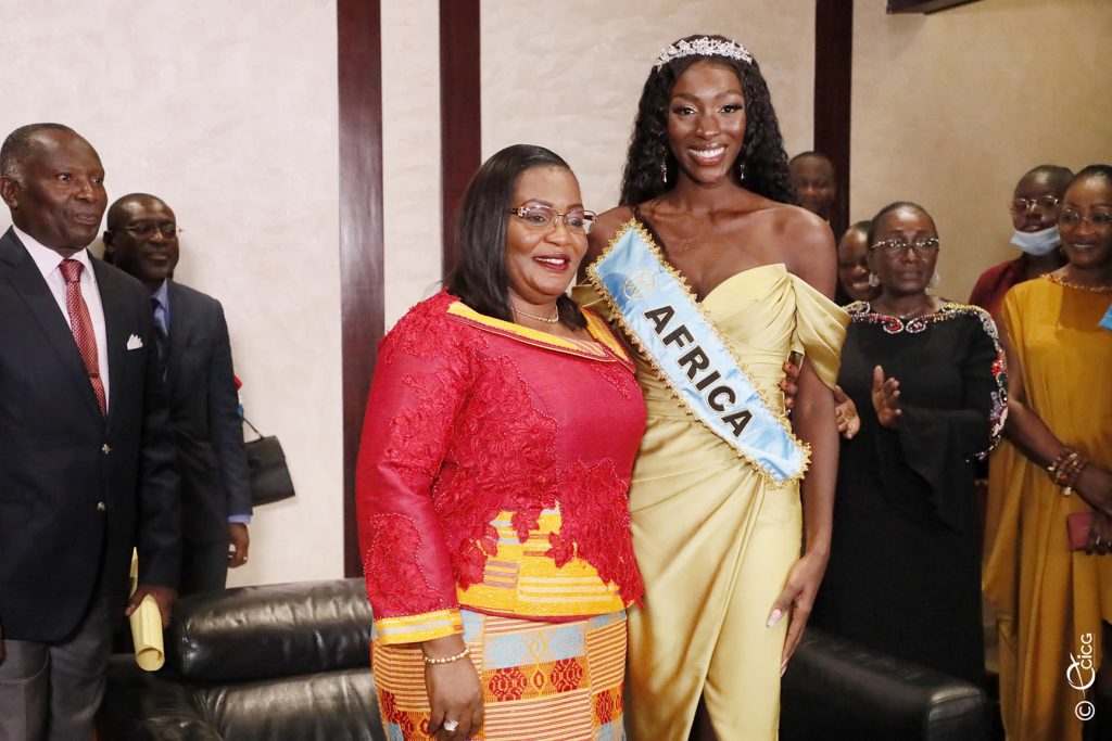 Olivia Yacé a été également félicitée par la ministre pour avoir rehaussé l’image de la Côte d’Ivoire à ce concours “par sa détermination, sa beauté, ses prises de parole, ses tenues vestimentaires mettant en avant le riche patrimoine ivoirien, par les différentes cartes postales des sites touristiques de la Côte d’Ivoire”.