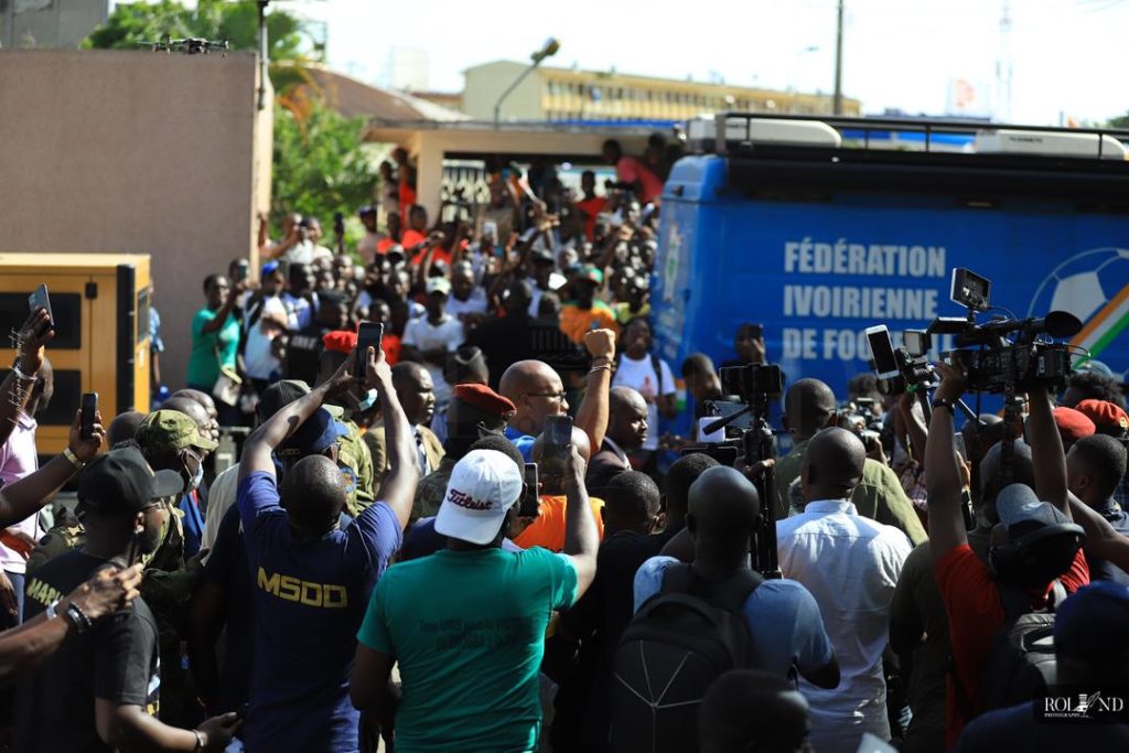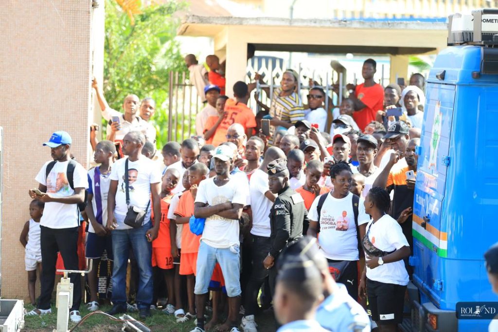 Ils ont été par moments débordés par la foule, mais ils ont réussi à la canaliser. Des groupes d’animation sur place faisaient le show. Ils scandaient et chantaient le nom de Didier. Accompagné de ses plus proches collaborateurs et bien d’autres personnalités de sa liste, le candidat est ému de voir tout ce monde sous ce soleil accablant. Malgré les difficultés de passage qui se dressaient à la foule, elle résiste parce que chacun veut voir Didier Drogba. Chacun veut le toucher et poser avec lui. Mais la situation n’est pas propice. La sécurité est renforcée dans le périmètre de la FIF. Des voies sont même barrées pour mieux maitriser le contrôle des lieux.