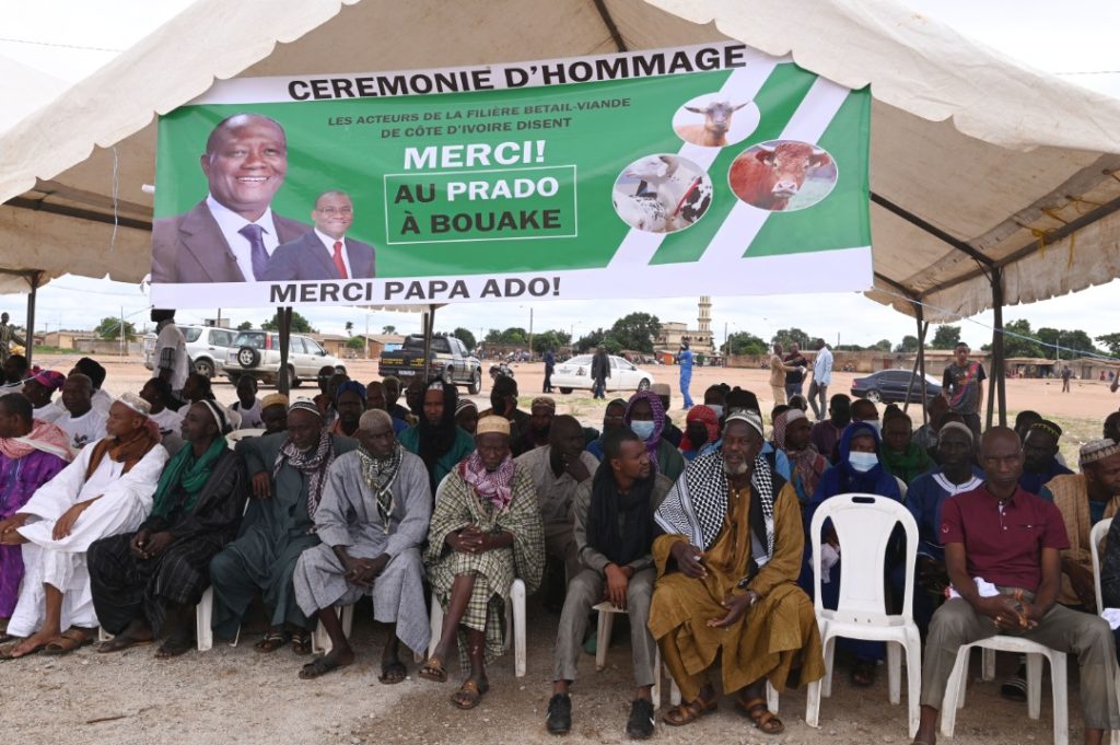 « La stabilité et le climat de paix retrouvés en Côte d’Ivoire depuis son accession à la tête de la magistrature suprême, ont fortement contribué à l’épanouissement de nos compatriotes et celui des acteurs des filières des ressources animales et halieutiques notamment la filière bétail-viande. C’est donc de bon droit que ces acteurs ici et aujourd’hui un arrêt pour traduire leur gratitude à notre bienfaiteur », a-t-il rappelé. Avant d’exhorter les acteurs de la filière d’être des acteurs de paix dans leur secteur, Sidi Touré leur a demandé de s’approprier toutes les réformes engagées par le Gouvernement. De sorte à atteindre la sécurité alimentaire à travers l’autosuffisance en viande et autres produits animaux. Il a réaffirmé l’engagement de l’Etat à les accompagner afin d’améliorer leurs conditions de vie et de travail.