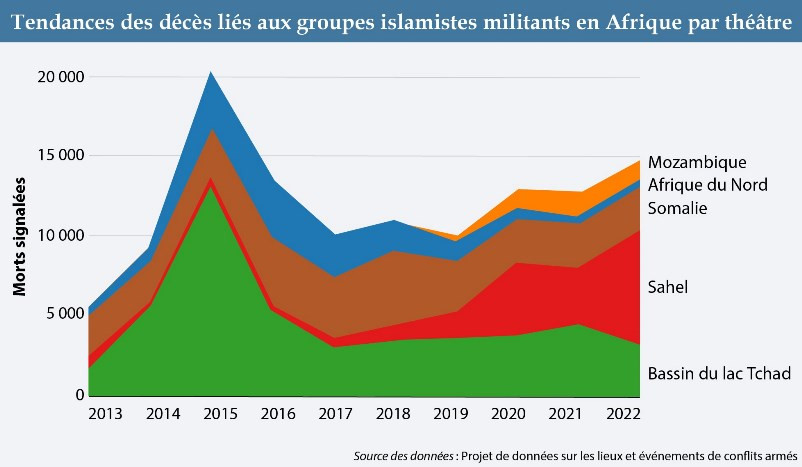 Les décès liés aux atrocités impliquant des groupes terroristes actifs dans la région représentent plus de la moitié de l’ensemble des décès signalés sur le continent en 2021. De sorte que le Sahel est en passe de devenir l’épicentre de l’activisme djihadiste violent en Afrique.