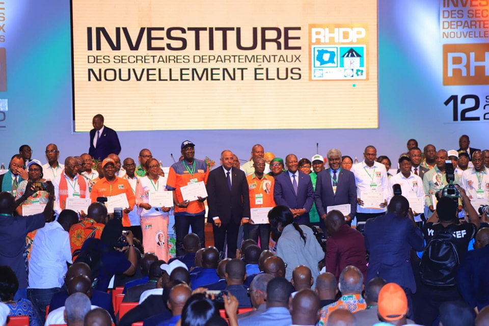 Ils au total 350 secrétaires départementaux nouvellement élus qui ont été mis en mission par le Président Alassane Ouattara, président du Rassemblement des houphouétistes pour la démocratie et la paix (RHDP). A l’issue d’une cérémonie du Conseil politique du RHDP qui s’est tenue au Sofitel Hôtel Ivoire d’Abidjan, ces nouveaux responsables locaux du parti au pouvoir ont été investis officiellement. Une investiture au cours de laquelle le Président Ouattara a tenu à saluer le travail réalisé par le président du Directoire et toute l’équipe en charge de ce processus. Il a fait savoir qu’aucun autre parti en Côte d’Ivoire ne saurait réaliser de telles prouesses.