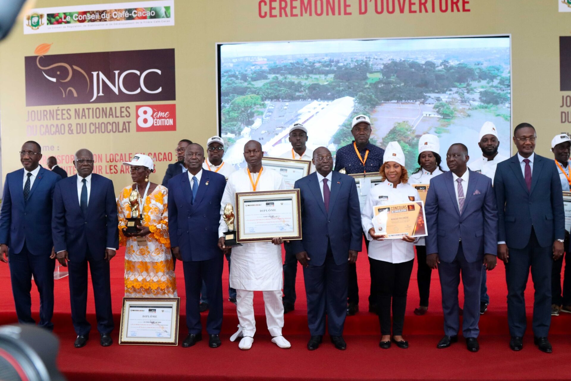 Le vice-président Tiemoko Koné ouvrant la 8e édition des journées nationales du cacao et du chocolat (JNCC) le vendredi 30 septembre 2022 a annoncé officiellement le prix de la campagne principale 2023 de commercialisation du cacao à 900 FCFA/Kg. En hausse de 75 FCFA/Kg par rapport à la campagne de commercialisation écoulée, cette annonce a provoqué la joie des producteurs qui ont pris en nombre les jardins de l’hôtel du golf qui abrite l’événement cette année. Le prix de la campagne de commercialisation du café a également été annoncé à 750FCFA.