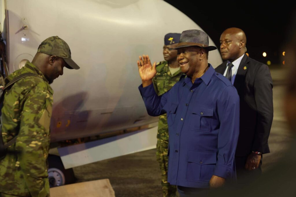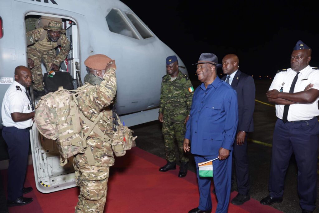 Il était exactement 23h39, samedi 07 janvier 2023, lorsque le gros porteur de l’armée de l’air de Côte d’Ivoire immatriculé TU-VMC s’est posé sur le tarmac de l’aéroport international Félix Houphouët-Boigny d’Abidjan. Avec à son bord les 46 soldats ivoiriens en provenance du Mali via le Togo qui avaient à leur tête le chef d’état-major général des Forces armées de Côte d’Ivoire, le Gal de corps d’armée Lassina Doumbia. Le Président de la République, en sa qualité de Chef suprême des Armées, a tenu échanger une poignée de main ferme avec ceux qu’il a qualifié de ‘‘héros’’ pour leur ‘‘mission accomplie’’.