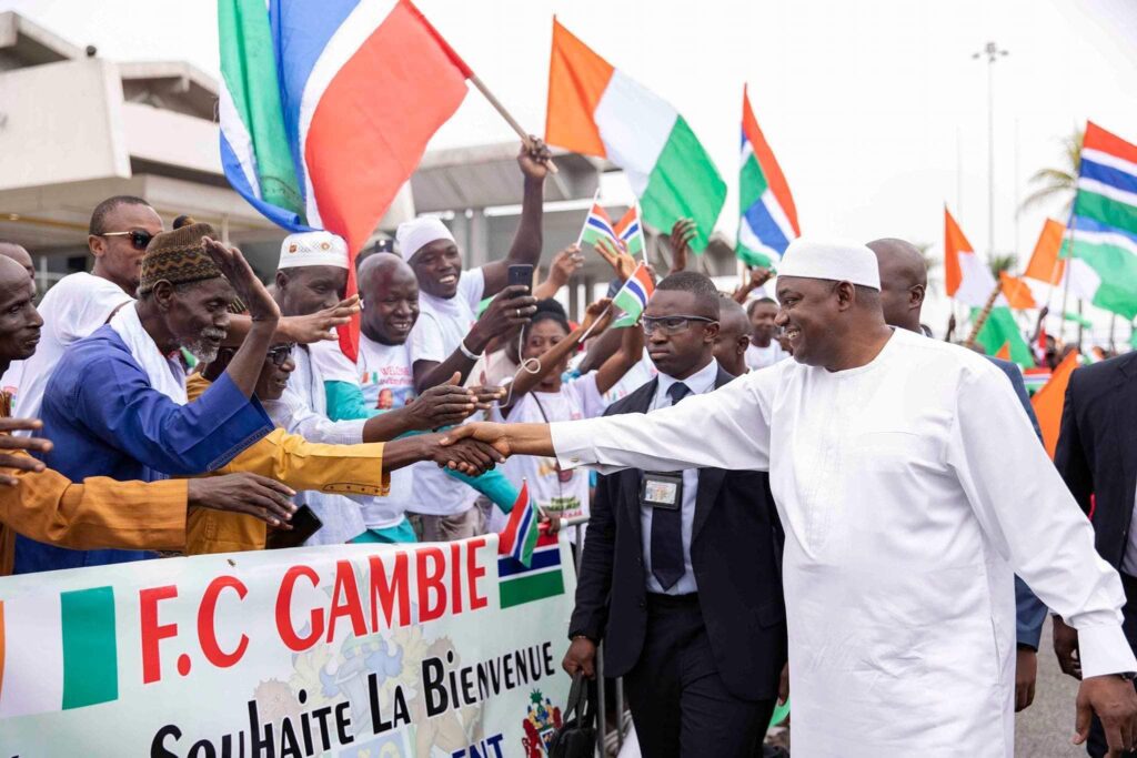 Son Excellence Monsieur Adama Barrow, Président de la Gambie, est en Côte d’Ivoire pour une visite de travail et d’amitié. Il a été accueilli ce mercredi 26 avril 2023, à son arrivée, à l’aéroport international Félix Houphouët-Boigny d’Abidjan par le Vice-président ivoirien, Koné Meyliet et plusieurs membres du gouvernement.