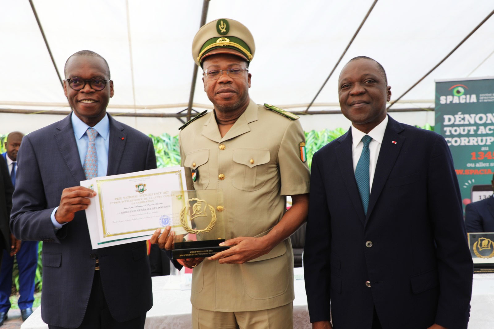 Pour rappel, dans la catégorie Bonne gouvernance, les 1er, 2ème et 3ème prix ont été respectivement attribués au ministère d’État, ministère de la Défense ; au ministère des Transports et au Groupement des Services Eaux et Electricité (GS2E). Dans la catégorie Lutte contre la corruption, les 1er, 2ème et 3ème prix ont été respectivement attribués à Konan Kouamé, agent de santé en poste à l’aéroport FHB d’Abidjan ; à la Direction générale des Douanes ivoiriennes et au général Ange Bernard Kessi.