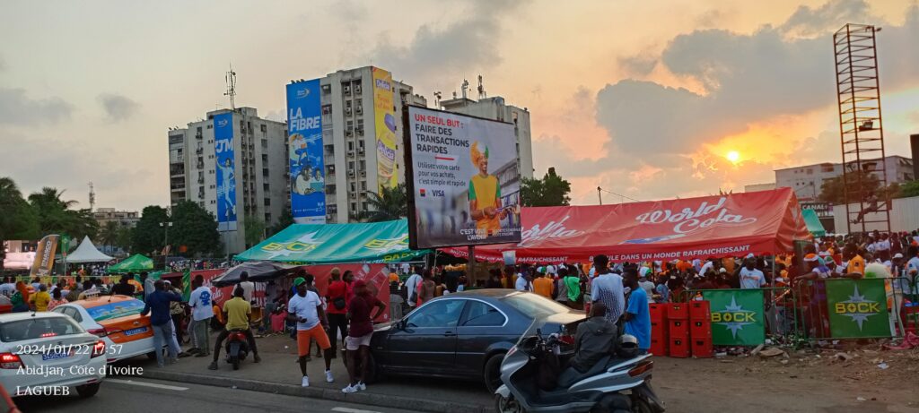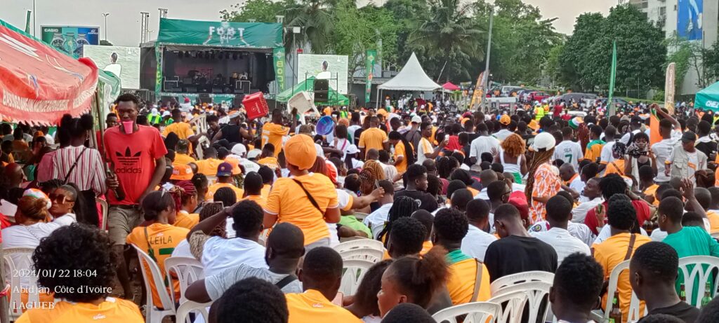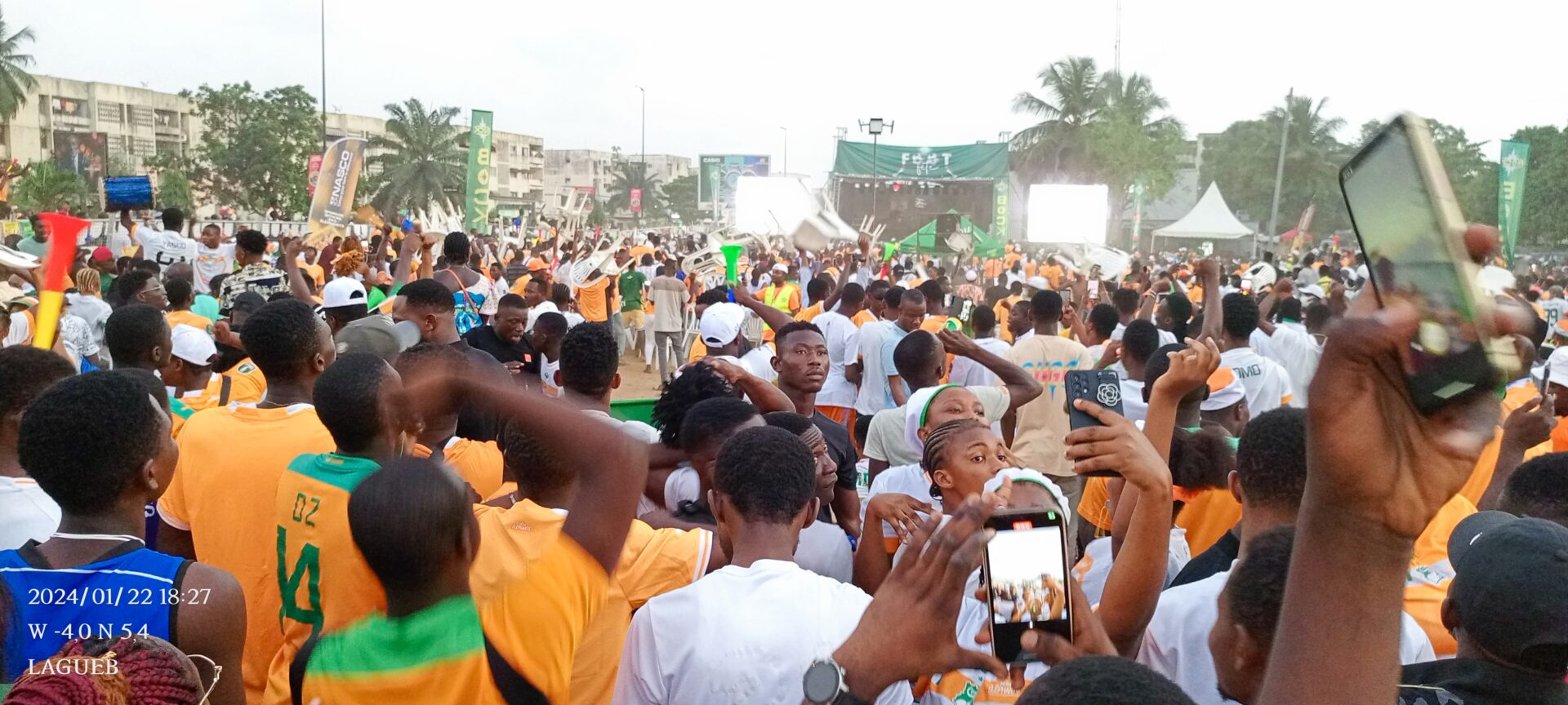 Les ivoiriens qui n’ont pas pu se rendre au stade se sont retrouvés dans les fanzones des différentes communes et quartiers d’Abidjan. À l’espace Sococe, ils étaient plusieurs milliers à suivre la rencontre entre la Côte d’Ivoire et la Guinée équatoriale.
