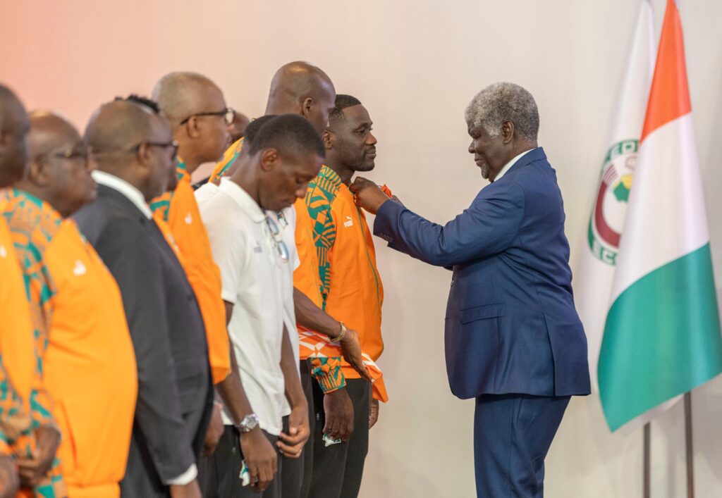” Parce qu’en réalité, c’en fut un. Je remercie, tous ceux qui étaient à nos côtés, en soutien constant, à savoir les membres du gouvernement, les Ministres gouverneurs dans les Districts hôtes de la compétition, les préfets et sous-préfets des mêmes localités, les Forces de Défense et de Sécurité, la police nationale et les forces de l’ordre, le BNETD, le COCAN, la FIF, les entreprises Côte d’Ivoire Énergie, la CIE, les volontaires, les bénévoles, tous les personnels d’exécution, les prestataires, les artistes, les transporteurs, les gloires du sport, les conseils municipaux et régionaux, les chefs traditionnels et tout le corps social. Les prestations de nos braves Eléphants ont décrit des trajectoires d’émotions, d’incertitudes et d’espérances“.