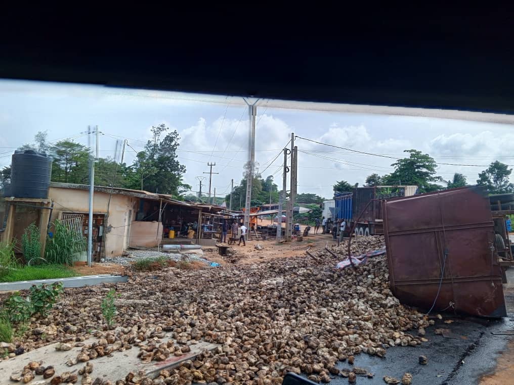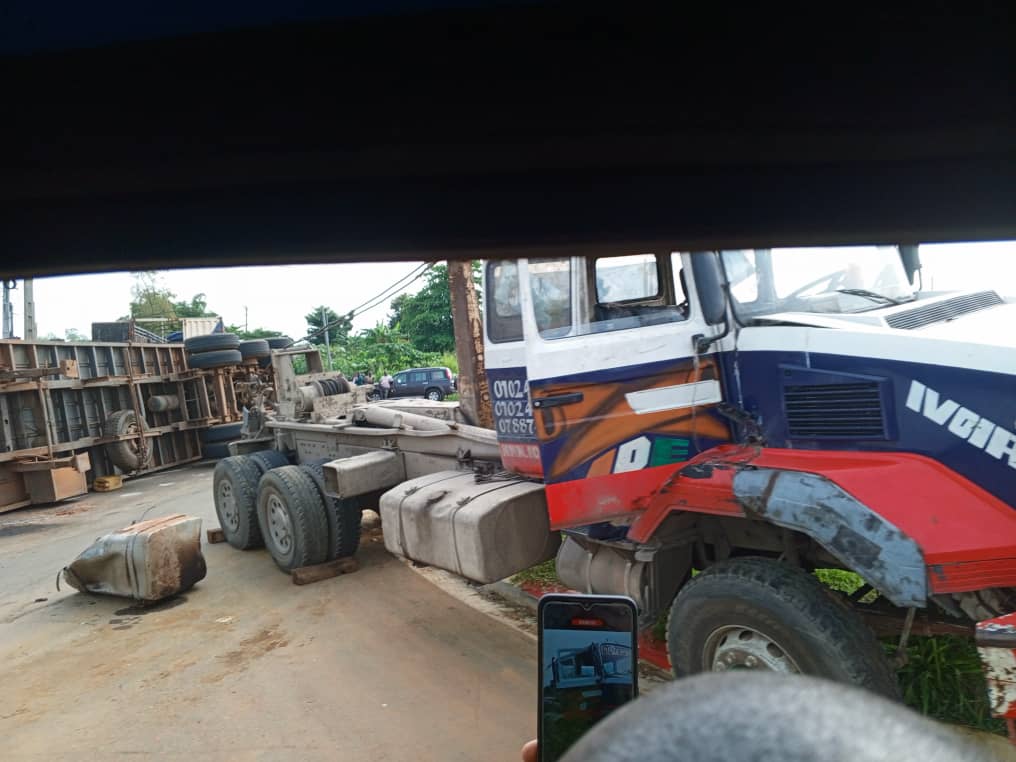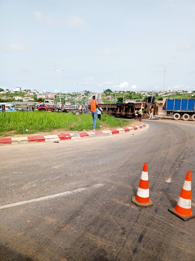 Axe Abidjan -Dabou : Trafic fortement perturbé par la chute d’un camion remorque au carrefour SAPH