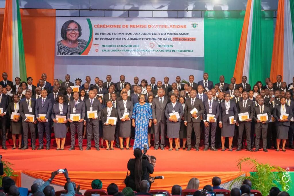 Lemandatexpress – Le mercredi 22 janvier 2025, au Palais de la Culture de Treichville, la Ministre d’État Anne Désirée Ouloto a présidé la cérémonie officielle de remise des attestations de fin de formation aux auditeurs du Programme de Formation en Administration de Base, session 2024.