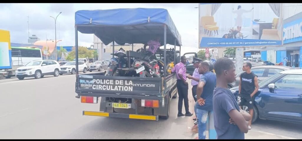 Néanmoins, l’accès aux voies latérales (ou bretelles) demeure autorisé pour le moment, afin de permettre aux usagers de s’adapter progressivement à la nouvelle configuration de la circulation.Le bilan de cette première journée d’opération est révélateur de l’ampleur du phénomène : 126 engins ont été saisis et conduits à la fourrière, dont 102 motos, 1 vélo et 23 tricycles. Ces chiffres illustrent à la fois la nécessité de la mesure et la volonté des autorités d’y donner une suite rigoureuse.