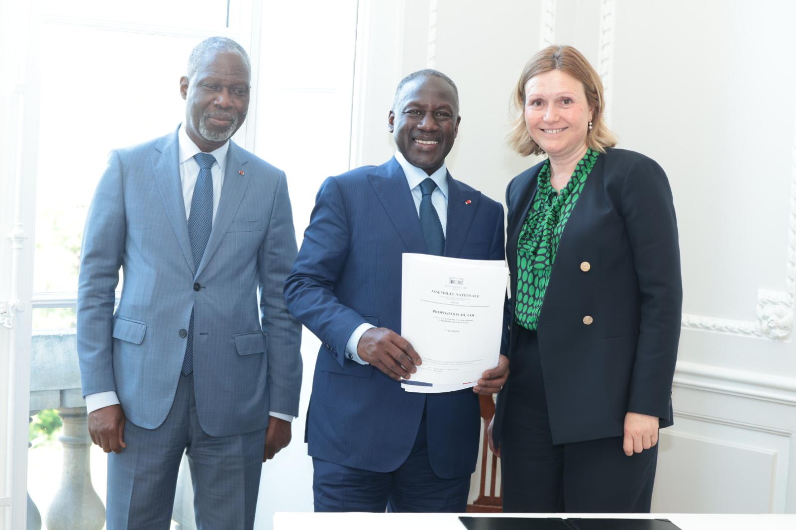Restitution du patrimoine : Adama Bictogo reçoit le cadre législatif du tambour parleur au Parlement français