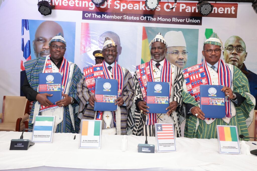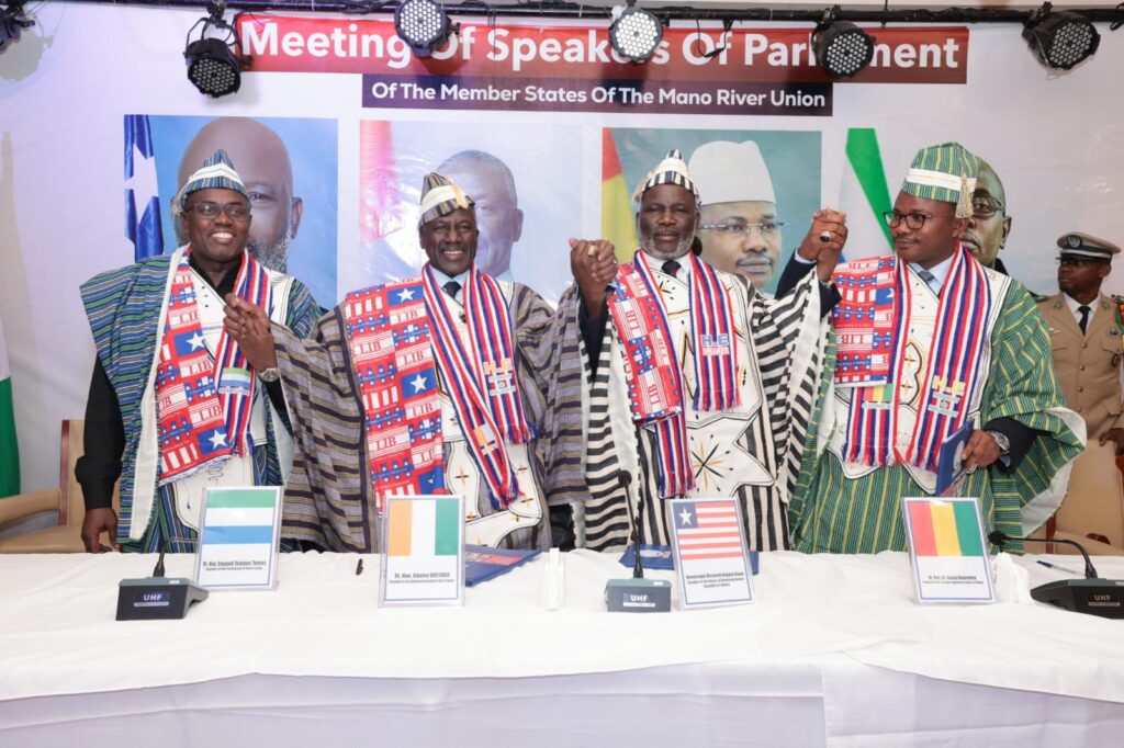 Lemandatexpress – Réunis à Monrovia le 20 juillet 2025, les Présidents de Parlement de la Côte d’Ivoire, du Libéria, de la Guinée et de la Sierra Leone ont posé les bases d’un Parlement régional. Cette rencontre, marquée par l’adoption d’un protocole fondateur et d’une Déclaration solennelle, consacre une ambition partagée : faire de l’UFM un levier de paix, de développement et de solidarité parlementaire au service des peuples de la sous-région.