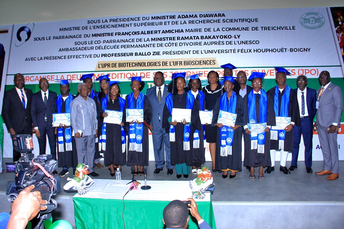 Bakayoko-Ly Ramata, Ambassadeur, Déléguée Permanente de la Côte d’Ivoire auprès de l’UNESCO, a honoré de sa présence, par visioconférence, le jeudi 24 juillet 2025, la 2ᵉ édition des Journées Portes Ouvertes de l’Unité Pédagogique et de Recherche (UPR) de Biotechnologies de l’UFR Biosciences de l’Université Félix Houphouët-Boigny. Elle y intervenait en tant que marraine de la promotion 2025 du Master Biotechnologie-Agroalimentaire.