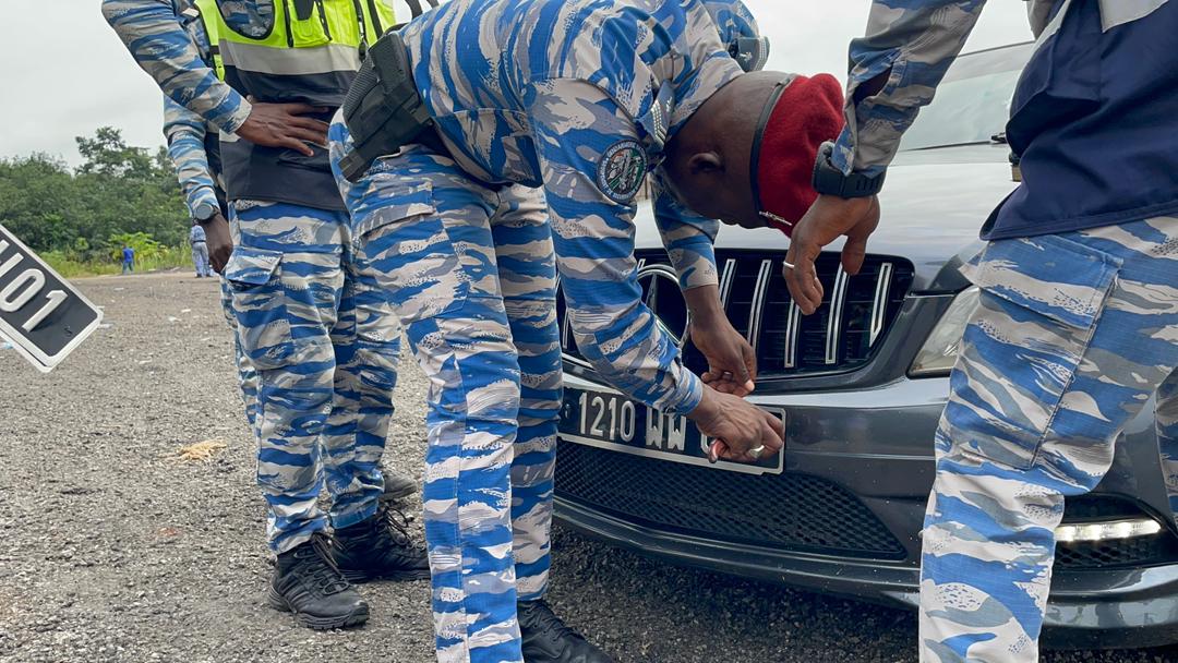 A notre passage, les hommes du colonel Dodora Serge (chef de l’unité du Gsr) qui ont pris la relève des forces de police nationale en cette zone interurbaine, ont pu, arracher plus d’une quinzaine de plaques. C’est une opération dirigée par la Direction générale des transports terrestres et de la circulation (DGTTC), entité sous tutelle du ministère des Transports. Justifiant le choix de cette section de l’autoroute du Nord, pour le premier responsable de la DGTTC, Oumar Sacko, « C’est un point stratégique » et, « Parce que, nous sommes à la sortie de la ville d’Abidjan et l’espace est vraiment approprié avec un parking qui permet de faire stationner les véhicules, le temps d’échanger avec les conducteurs de les verbaliser, de leur infliger des sanctions qui sont prévues par nos lois ».