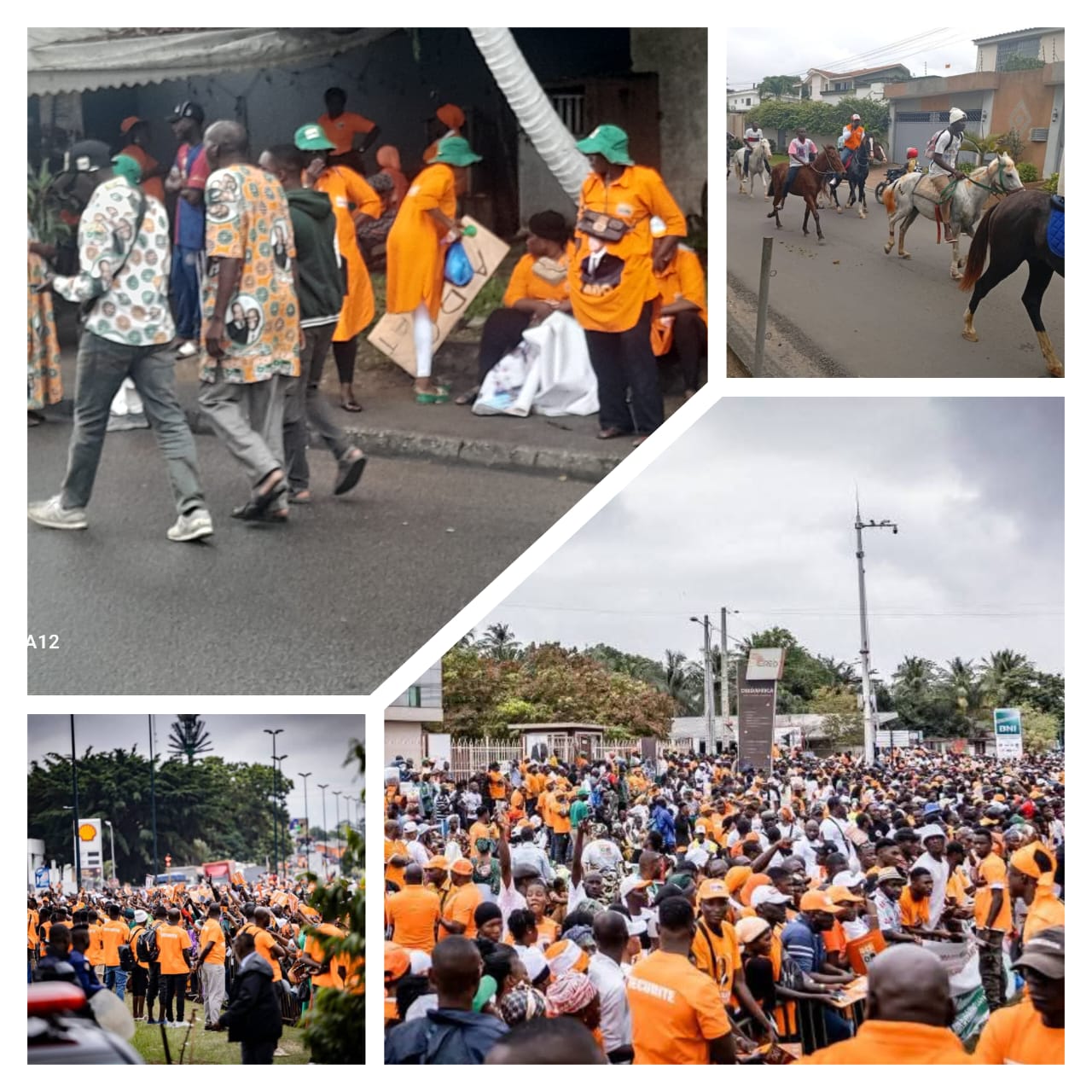 Très tôt ce matin, des milliers de militants venus des quatre coins du District d’Abidjan se sont rassemblés au carrefour Duncan pour soutenir leur champion lors du dépôt de sa candidature. Des bénévoles, mobilisés pour l’occasion, ont offert de l’eau afin de rafraîchir la foule sous le soleil ardent.