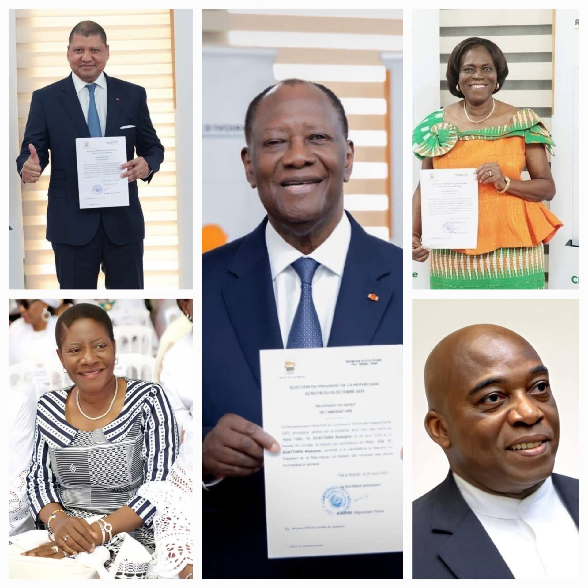 Sur un total de 60 dossiers de candidature déposés, seuls cinq ont été declarés éligibles. Ainsi, le chef de l’État sortant, Alassane Ouattara, investi par le RHDP, affrontera quatre challengers :