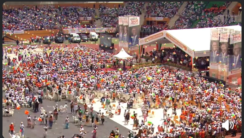 Le stade Félix Houphouët-Boigny vibrait, ce dimanche, aux couleurs du RHDP lors du grand meeting dédié aux femmes en soutien au Président Alassane Ouattara, candidat du parti au pouvoir à la présidentielle d’octobre 2025. Des milliers de femmes, venues de toutes les régions du pays, se sont massées dans l’enceinte du mythique stade Félix Houphouët-Boigny d’Abidjan pour témoigner leur attachement et leur reconnaissance à celui qu’elles appellent affectueusement “leur champion”.