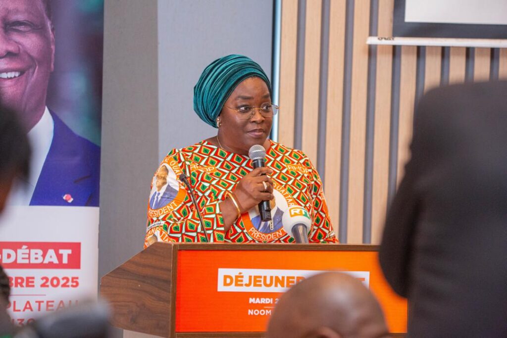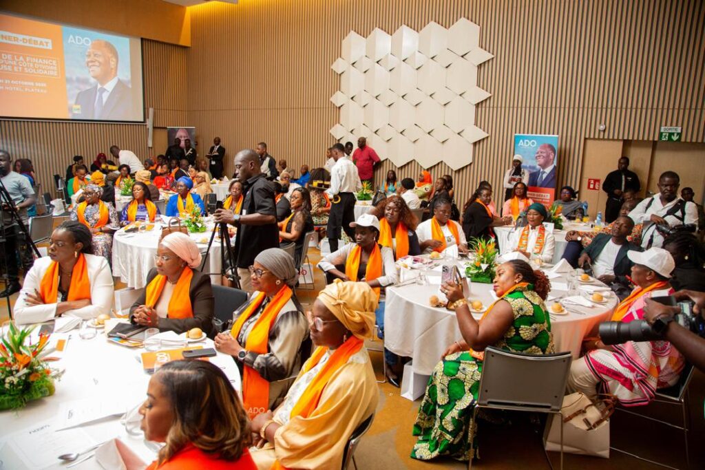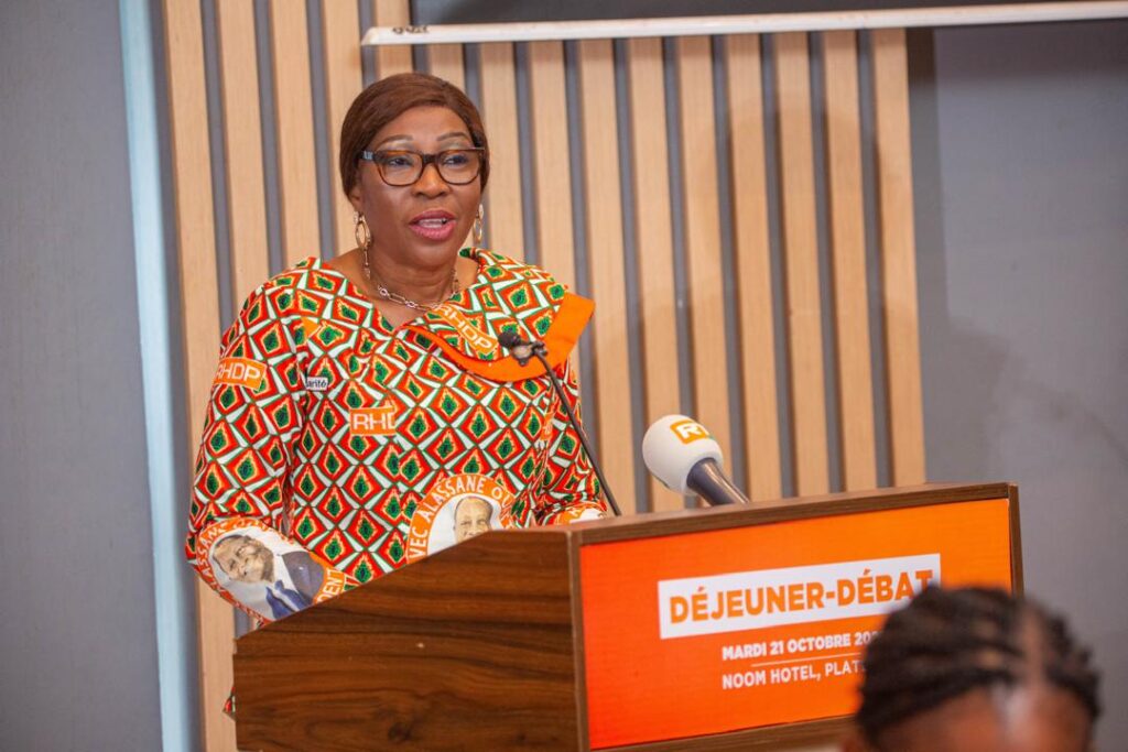 Organisé à l’initiative de Minafou Fanta Koné Coulibaly, Expert Financier, le déjeuner-débat, placé sous la présidence de Kandia Camara, présidente du Sénat et directrice nationale adjointe de campagne chargée des femmes, avait pour thème : « Femmes de la finance, actrices d’une Côte d’Ivoire ambitieuse et solidaire ».