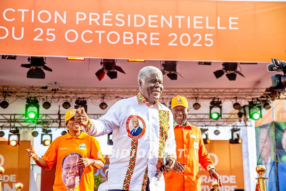 Alors que la campagne s’achève ce soir à minuit, il a lancé un appel à la vigilance et au vote : « Je vous demande d’être vigilant. Bien surveiller vos différents quartiers. Parce que, vous savez, les chiens peuvent toujours passer….Je vous demande de redoubler d’efforts et d’aller voter massivement le samedi 25 octobre 2025. » Il a exhorté ses partisans à ne pas voter seuls, mais à mobiliser leurs familles, car un vote pour lui est un vote pour « la paix, la stabilité, le développement, et la solidarité. »