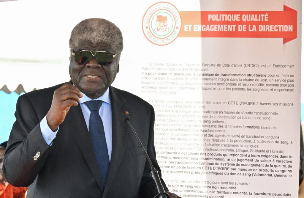 Le ministre de la Santé, Pierre Dimba, a pour sa part souligné l’importance du sang dans la santé publique. Il a indiqué que disposer de réserves suffisantes constitue une priorité pour le gouvernement, d’où la volonté du ministère de rapprocher les services de transfusion sanguine des populations. Quant au choix porté sur Songon, il répond, selon lui, à une demande croissante :réduire les délais d’approvisionnement, améliorer la prise en charge transfusionnelle et renforcer la sécurité sanitaire des populations de Songon et des localités voisines telles que Yopougon et Dabou. Ce centre, selon les prévisions du ministre Dimba, sera opérationnel dans un délai maximum de six mois. Il aura pour mission de collecter le sang, de préparer les produits sanguins, d’assurer leur distribution dans les hôpitaux et de garantir la sécurité transfusionnelle dans sa zone d’extension.