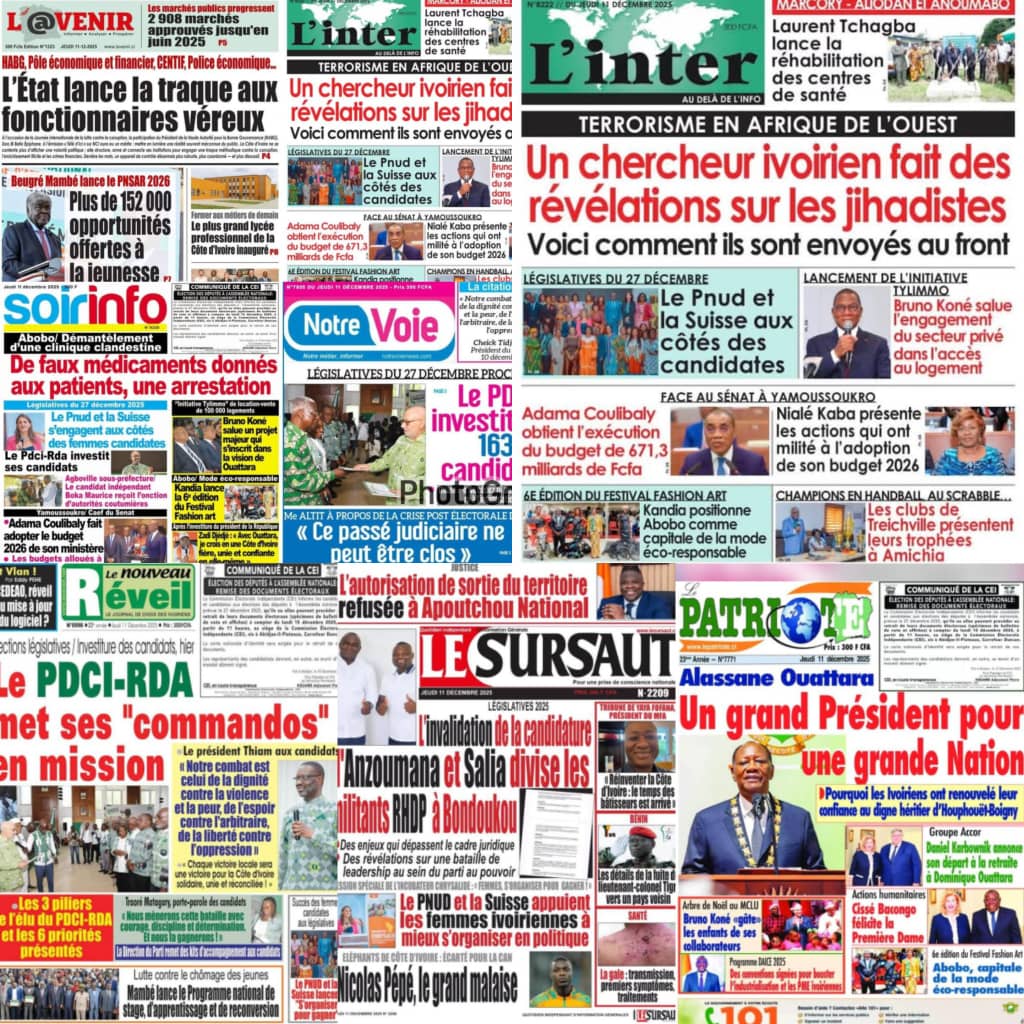 Lemandatexpress – À dix-sept jours des législatives du 27 décembre, l’actualité politique ivoirienne se densifie. De la lutte contre la corruption aux investissements des partis politiques, en passant par les tensions au sein des formations d’opposition, les journaux de ce jeudi 11 décembre dressent un paysage contrasté, marqué à la fois par la mobilisation institutionnelle et les stratégies partisanes