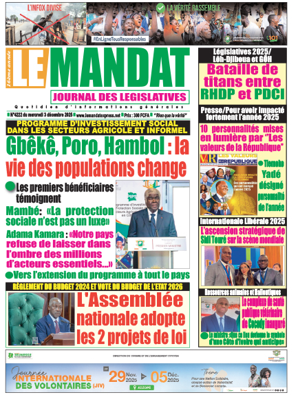 • Assemblee Nationale : Les députés adoptent un budget 2026 à 17 350,2 milliards FCFA